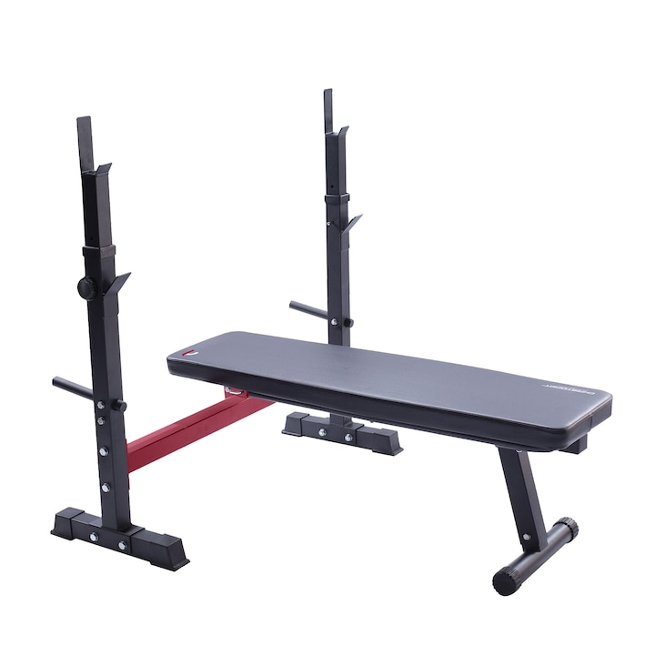 Bancă de exerciții plană, negru/roșu, Lukadora