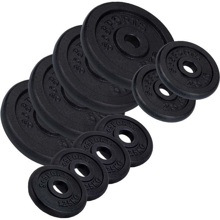 Set de discuri 30 kg (4 x 2.5 kg + 4 x 5 kg), 30/31 mm, fonta, negru ScSports
